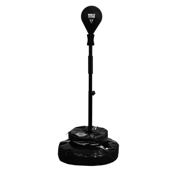 TITLE Lightning Strike Pro Reflex Bag with Anchor – Refine and develop astonishing speed, razor sharp punching accuracy and pin-point precision with the incredible Lightning Strike Pro Reflex Bag. Industrial steel tubular construction is fully adjustable and manufactured for world champions to fitness boxers in the gym and for home training. Professional grade 7.5” high-tension steel spring guarantees blazing speed and lightning fast action. Super contoured, 869 grams sponge-rubber, mid-density 9” striking target offers ideal resistance and superior quality, with no inner bladders or air pump requirements. Simply and easily adjusts from about 4’ (48”) to 6’ (72”) tall to perfectly accommodate every size athlete from youth to super heavyweight. The Lightning Strike Pro Reflex Bag is ideal for honing every punch and strike . . . jabs, power punches, hooks, uppercuts, angled punches, rapid combinations, and more – plus slipping, weaving and defensive drills. Quick and easy assembly. Adjusts simply with a secure turn knob. Innovative design and craftsmanship benefits and advances fitness boxers to professional champions with fantastic training advances, cardio benefits and improvements that win. Secure the vital edge required to win by gaining and perfecting punching speed, accuracy and timing! Now includes four masonry floor anchors for permanent installation into concrete floors, and two unfilled round anchor bags to fill with sand for a more portable freestanding weighted option.