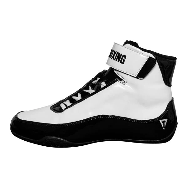 TITLE Ring Mamba Boxing Boot – The Ring Mamba is unleashed! The highly anticipated, long awaited low-profile Ring Mamba Boxing Shoes feature a stunning compilation of brilliant engineered patent leather for the most dominant, aggressive and dazzling ring shoe crafted for speed and explosive results. Exclusive shock suppression insole insets, technically inserted at key impact zones in the toe, heel and arch, to offer the ultimate in support and balance in the ring. Full EVA midsole and TITLE extruded gum rubber, three-dimensional outsole delivers superior traction, pin-point pivots, flexibility and durability. Strategic offset three-quarter lace tie offers extra support on the outsides, where it is demanded most during intense action. Fully padded tongue, moisture wicking inside lining, hook-and-loop ankle support and striking embroidered logos and accents throughout. Approximate 6.5” low-profile height is built for speed, performance, pinpoint pivots and added support. Strike now with the Ring Mambas!